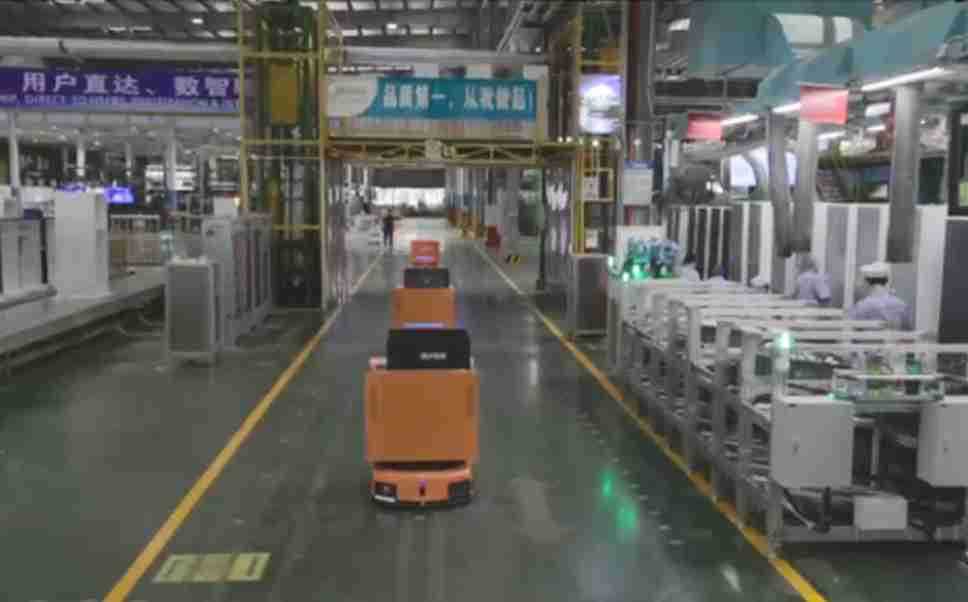 为车载冰箱物流配送打造的智能解决方案,,包含产中物流通过潜伏举升AMR搬运至线边,,,产后成品物流智能仓储,,,流程包含产中物流智能齐套入库,,线边安灯叫料AMR智能配送至线边,,,成品入库、、、、出库,,,,通过无人堆高车机器人,,,,智能仓储管理替代人工作业管理,,,实现更高存储、、、更高效率、、更具柔性化的解决方案。。