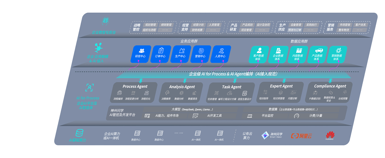 果博问学智车解决方案是一套基于AI技术的汽车行业智能化系统,,覆盖从底层算力到顶层AI应用的全栈方案。。。。方案由算力层、、模型层和应用层组成:算力层,,,方案支持多种一体机配置,,具备云端灵活部署、、多云适配以及动态优化计算资源的能力;模型层,,,,果博问学平台版提供了企业级AI应用一站式构建与管理平台,,支持基于后训练强化技术的汽车企业专属模型的训练、、、、评测和运营;应用层,,果博问学DeepSeek版提供包括超级员工、、智能招采、、智能营销、、、智能客服、、、、AI for BI等一系列解决方案,,,可助力汽车行业实现数字化转型,,让管理更智能、、响应更敏捷。。。